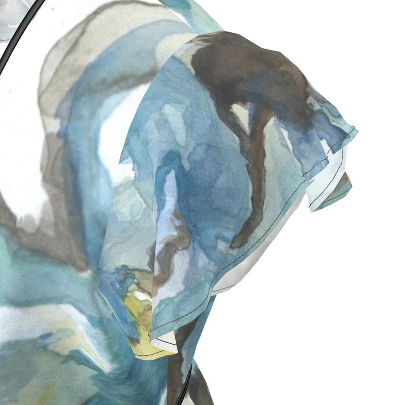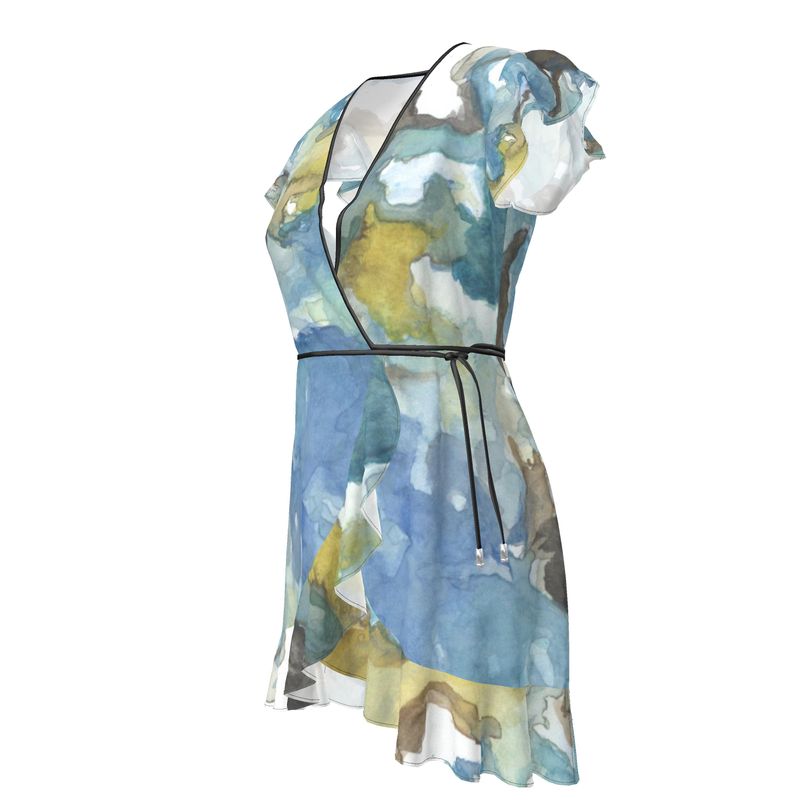 Introducing the "Calm Waters" Crepe Wrap Tea Dress—a seamless fusion of contemporary art and classic elegance, showcasing the serene artwork of Quána Madison. This exquisite dress transforms Madison's "Calm Waters" into a wearable masterpiece, enveloping you in tranquil hues and fluid forms that evoke a sense of peace and harmony.