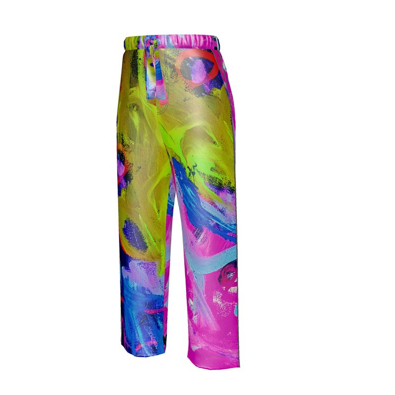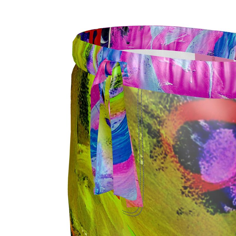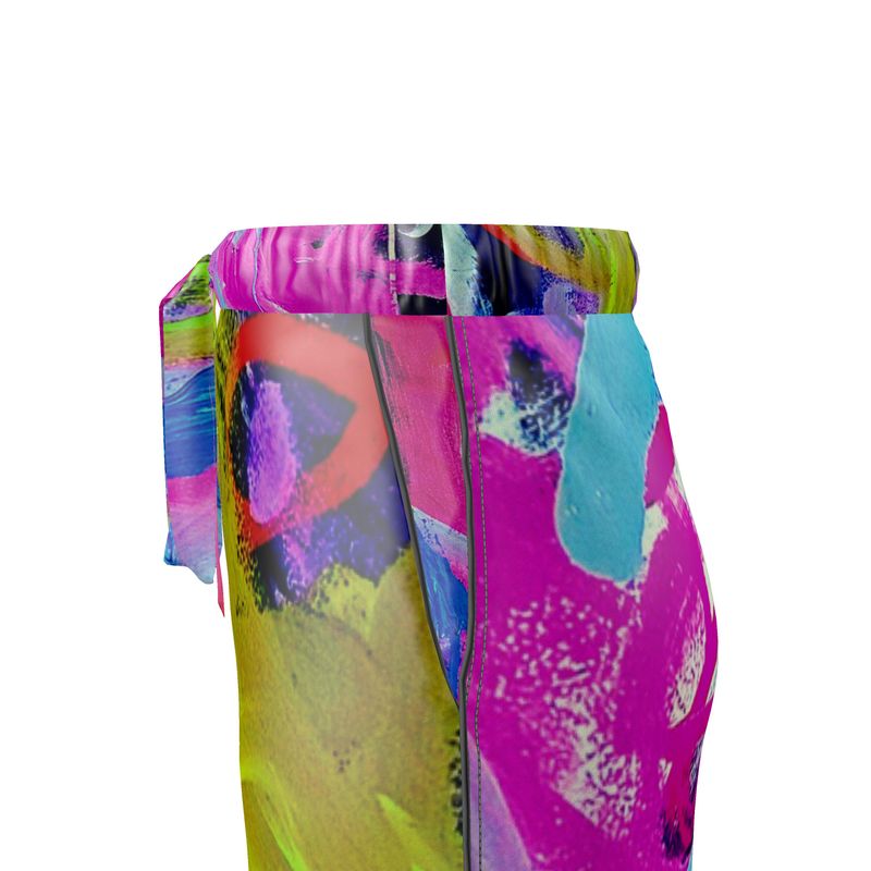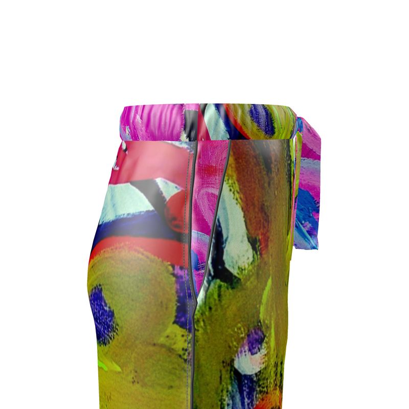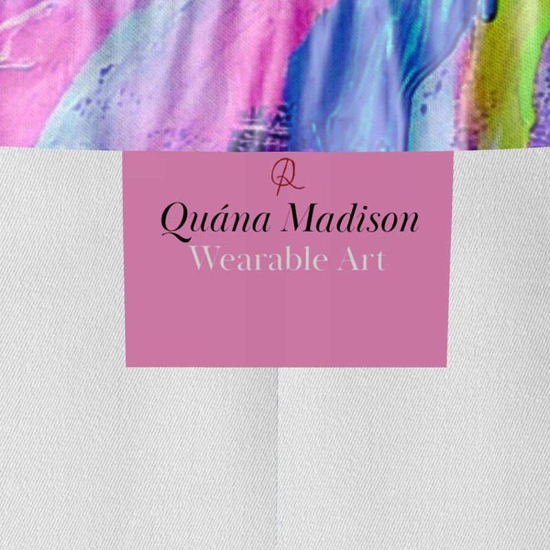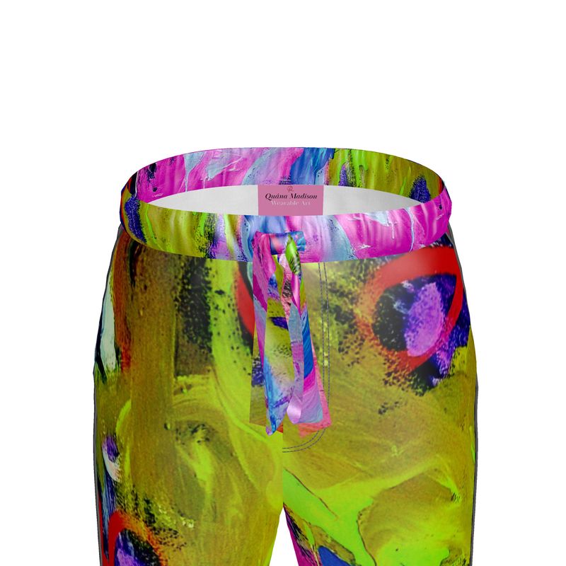 Introducing the "Laughter" Silk Pants—a harmonious fusion of contemporary art and luxurious fashion, showcasing the vibrant abstract expressionism of artist Quána Madison. These exquisite pants transform Madison's "Laughter" into a wearable masterpiece, enveloping you in a symphony of colors and forms that celebrate joy and creativity.