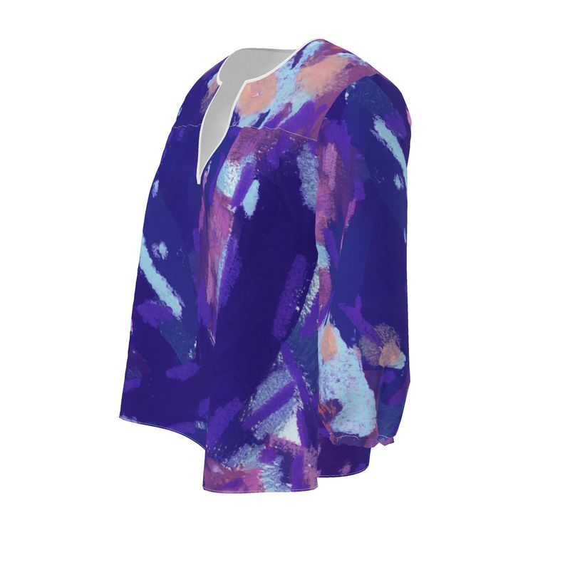 This tunic transforms Madison's "Lavender Contemplation" into a wearable masterpiece, enveloping you in soothing hues and contemplative forms that evoke tranquility and introspection.