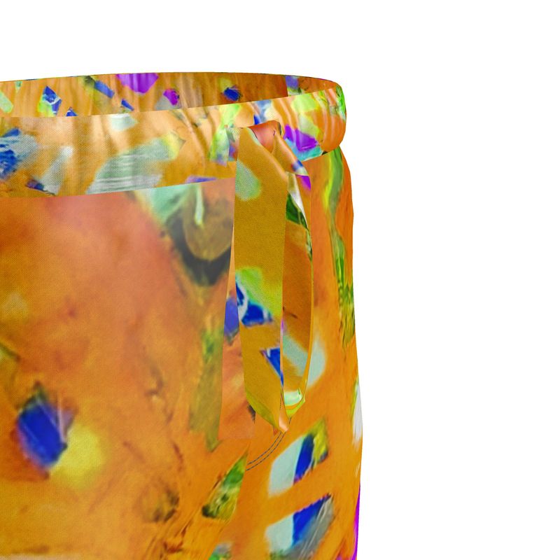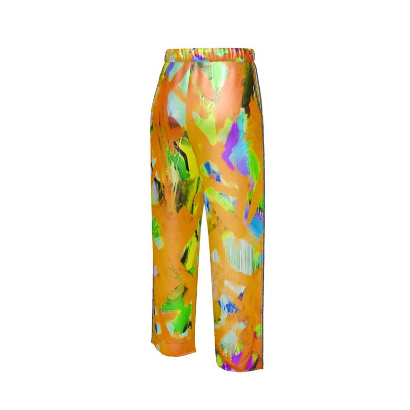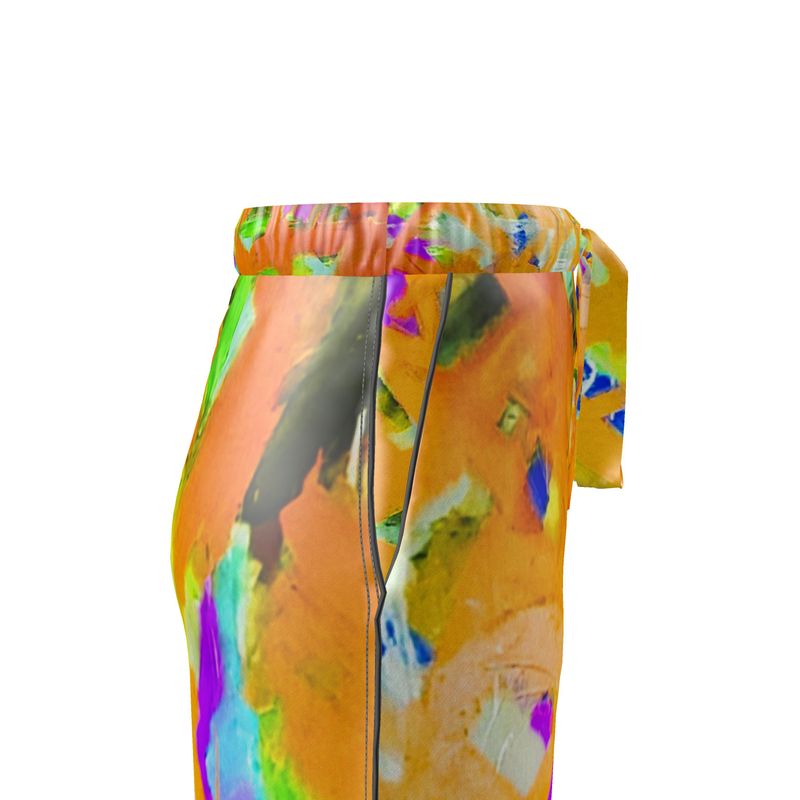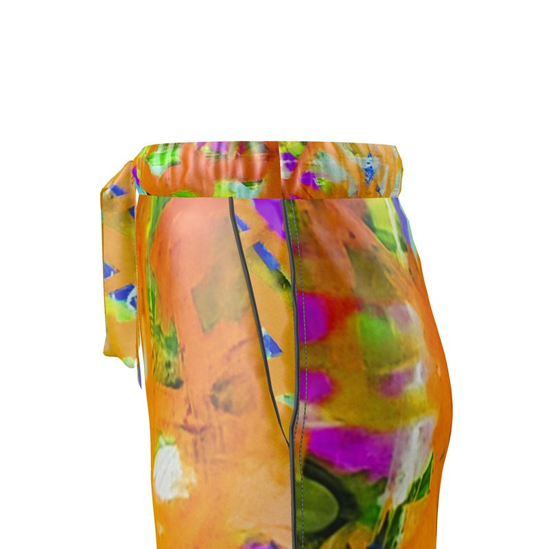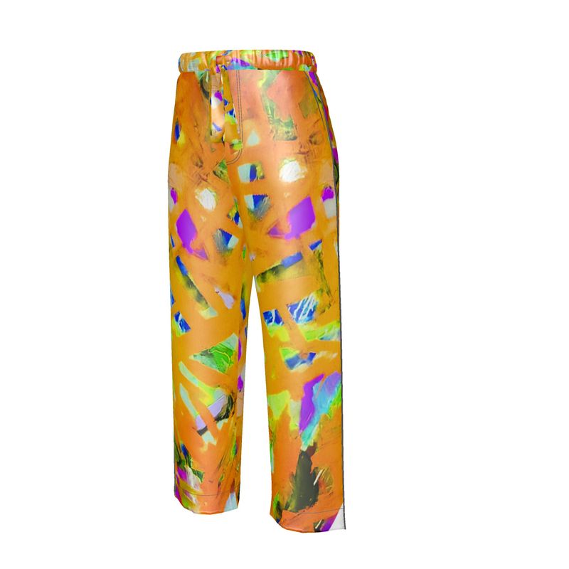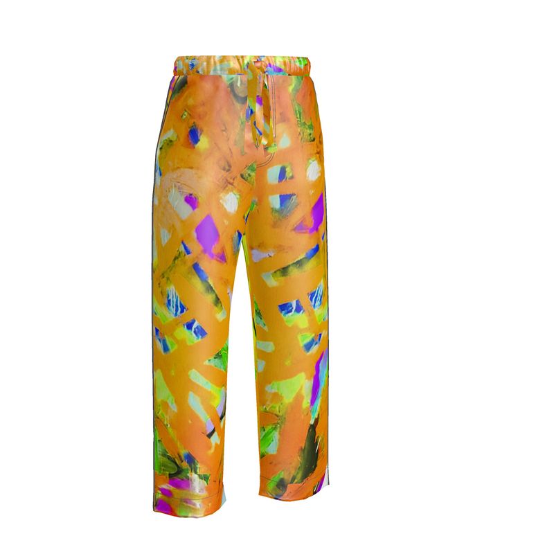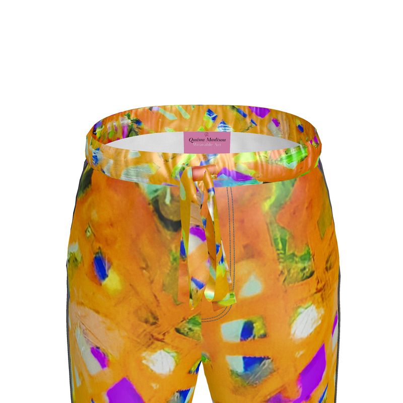 Introducing the "Orange Joy" Luxury Silk Pants—a harmonious fusion of contemporary art and high-end fashion, showcasing the vibrant artwork of Quána Madison. These exquisite pants transform Madison's "Orange Joy" into a wearable masterpiece, enveloping you in a symphony of warm hues and dynamic forms that celebrate positivity and creativity.