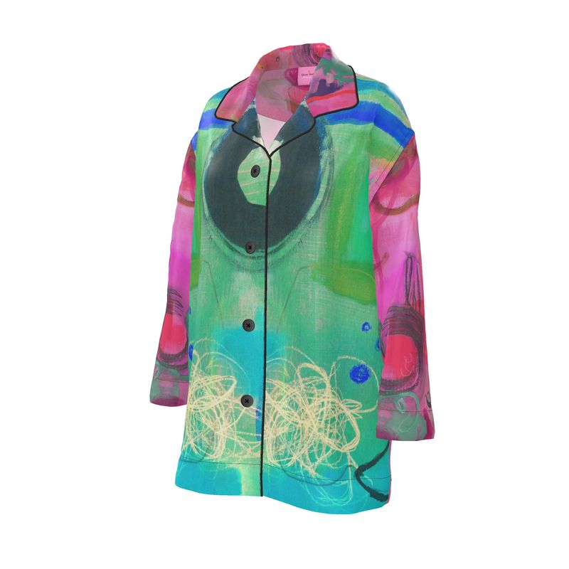 Crafted from premium silk, this shirt is light as air and decadently smooth—perfect as a refined sleep shirt, elevated loungewear, or the centerpiece of a head-turning evening ensemble. The relaxed cut offers effortless drape while the artwork speaks volumes without saying a word.