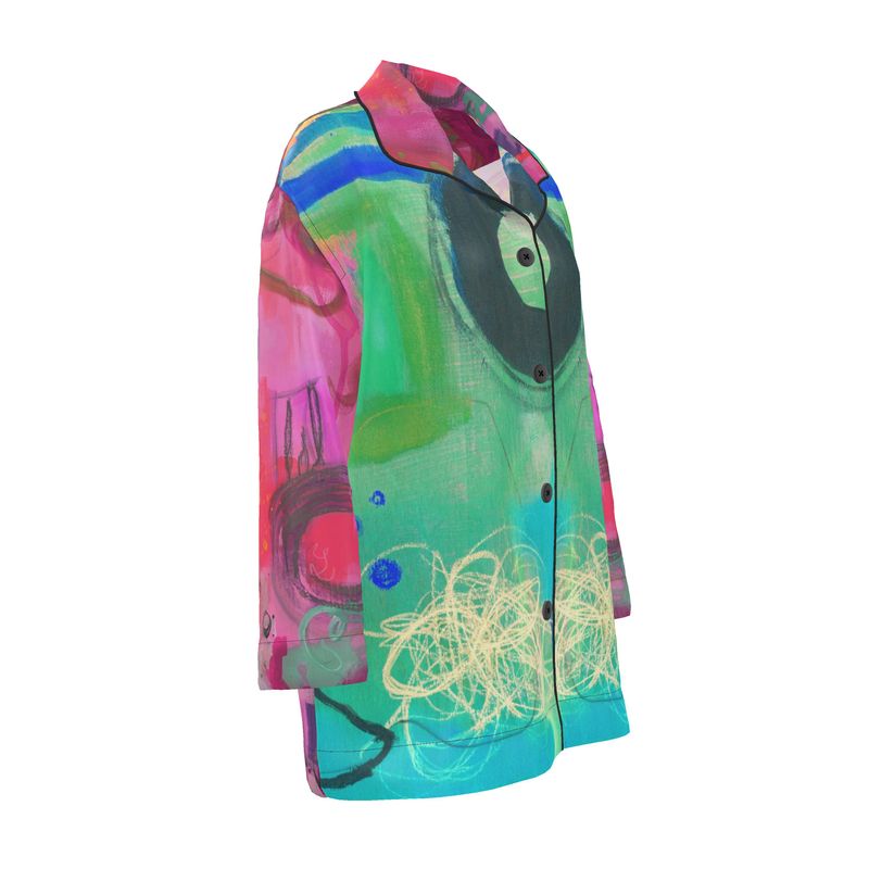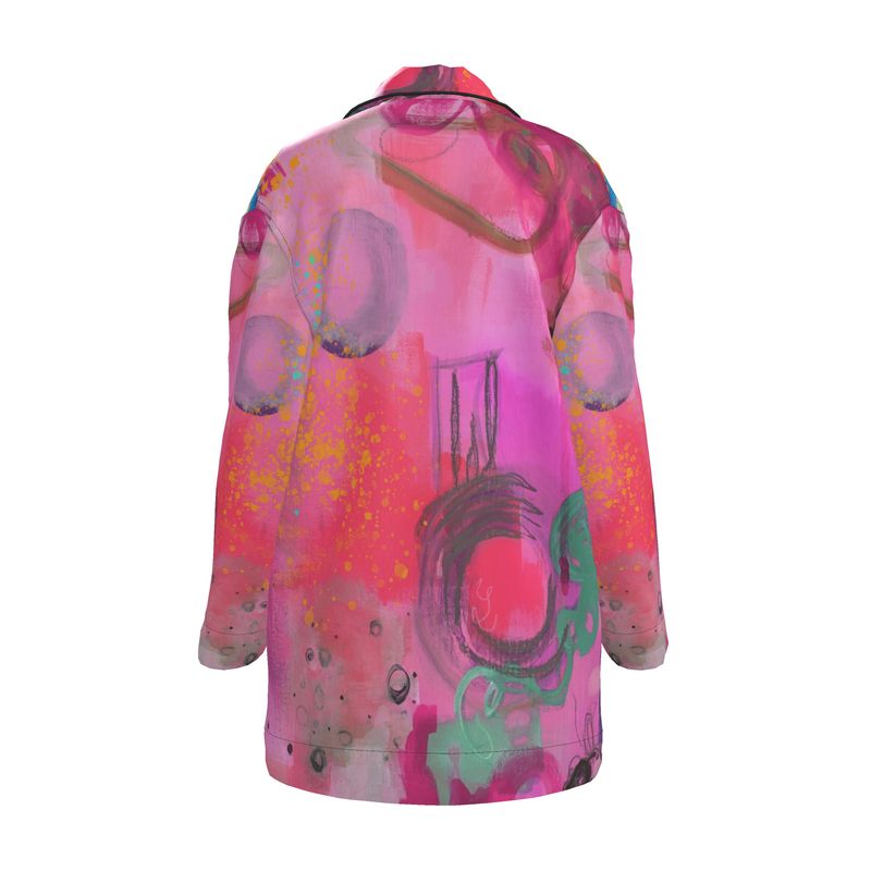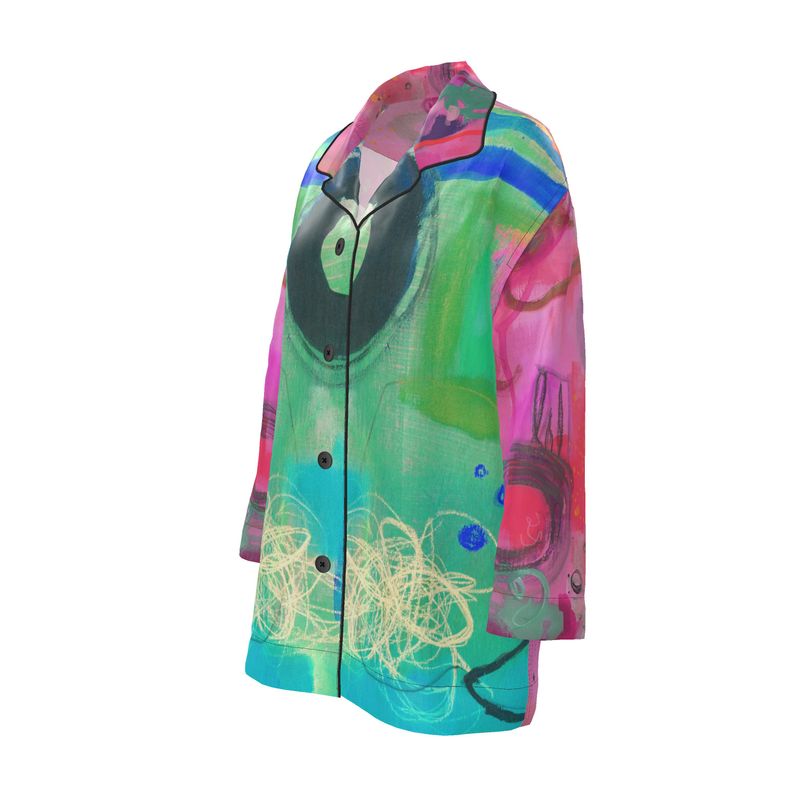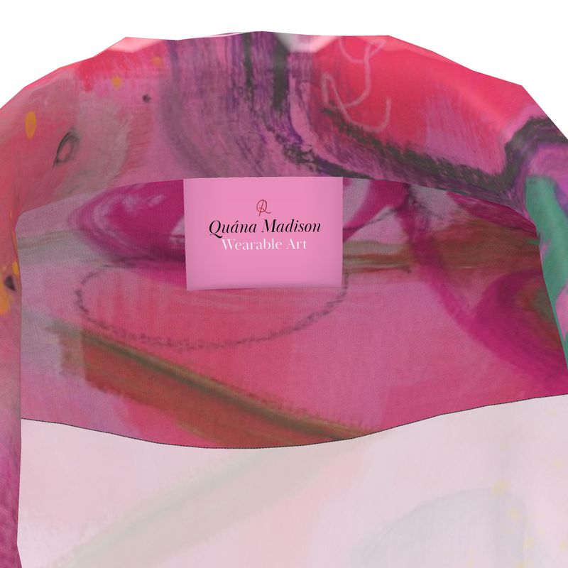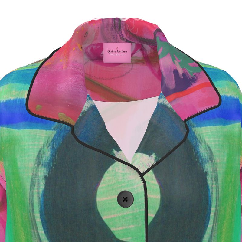 Wrap yourself in radiant softness with the Remembered Agape silk shirt—a fluid expression of love, memory, and bold elegance. This stunning piece features original artwork by Quána Madison, capturing the layered beauty of connection and grace through vibrant brushwork and soulful design.