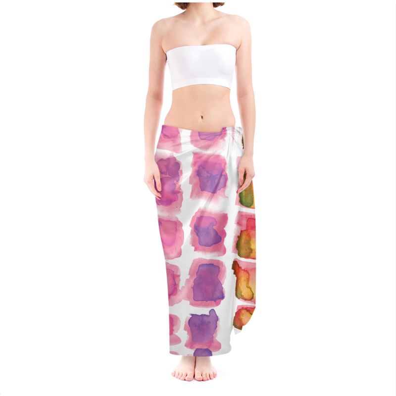 Introducing the "Sunset" Sarong Wrap Skirt—a harmonious blend of contemporary art and versatile fashion, showcasing the evocative "Sunset" artwork by Quána Madison. This exquisite sarong transforms Madison's vibrant depiction of a sunset into a wearable masterpiece, enveloping you in warm hues and abstract forms that capture the essence of day's end.